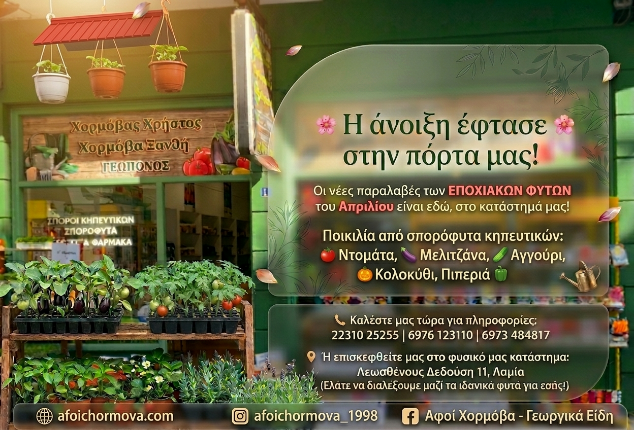 !!! ΜΗ ΧΑΝΕΙΣ ΧΡΟΝΟ...ΕΠΙΣΚΕΨΟΥ ΤΟ ΚΑΤΑΣΤΗΜΑ ΜΑΣ ΓΙΑ ΤΑ ΠΙΟ ΦΡΕΣΚΑ ΚΑΙ ΠΟΙΟΤΙΚΑ ΣΠΟΡΟΦΥΤΑ ΚΗΠΕΥΤΙΚΩΝ ΤΗΣ ΣΕΖΟΝ Ή ΚΑΝΕ ΤΗΝ ΠΑΡΑΓΓΕΛΙΑ ΣΟΥ ΤΗΛΕΦΩΝΙΚΑ ΚΑΙ ΣΕ ΠΕΡΙΜΕΝΟΥΜΕ ΣΤΟ ΚΑΤΑΣΤΗΜΑ ΝΑ ΤΗΝ ΠΑΡΑΛΑΒΕΙΣ !!!